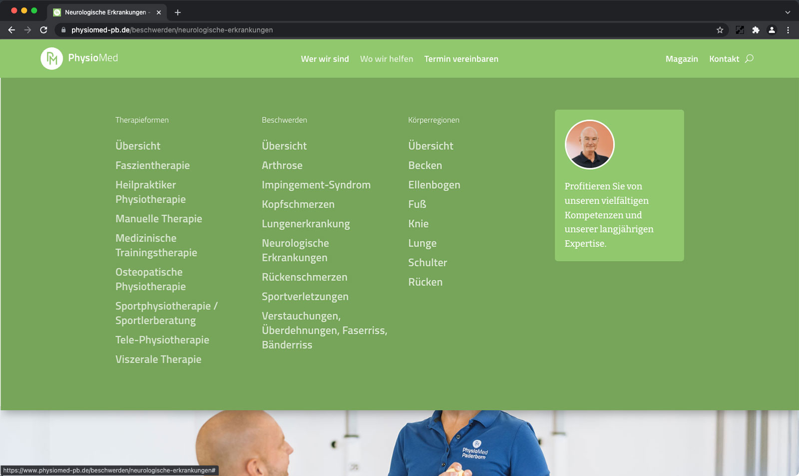 Bildwelt Leidenschaft und Expertise sind zwei Eigenschaften, die das Team von PhysioMed Paderborn auszeichnet. In der neuen Bildsprache bieten wir echte Einblicke in den Praxisalltag. Persönlich, nah und authentisch.