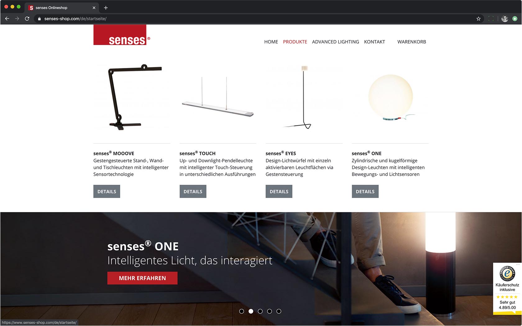 Die Sprache von senses® ist klar und eindeutig. Sie verbindet die Merkmale des Advanced Lighting und hebt das besondere Erlebnis mit der Marke hervor. Obwohl wir um unseren Vorsprung wissen, kommunizieren wir diese Vorzüge nicht in Superlativen, sondern ganz selbstbewusst: senses® macht nicht das bessere Licht. Wir sind schon einen Schritt weiter.
